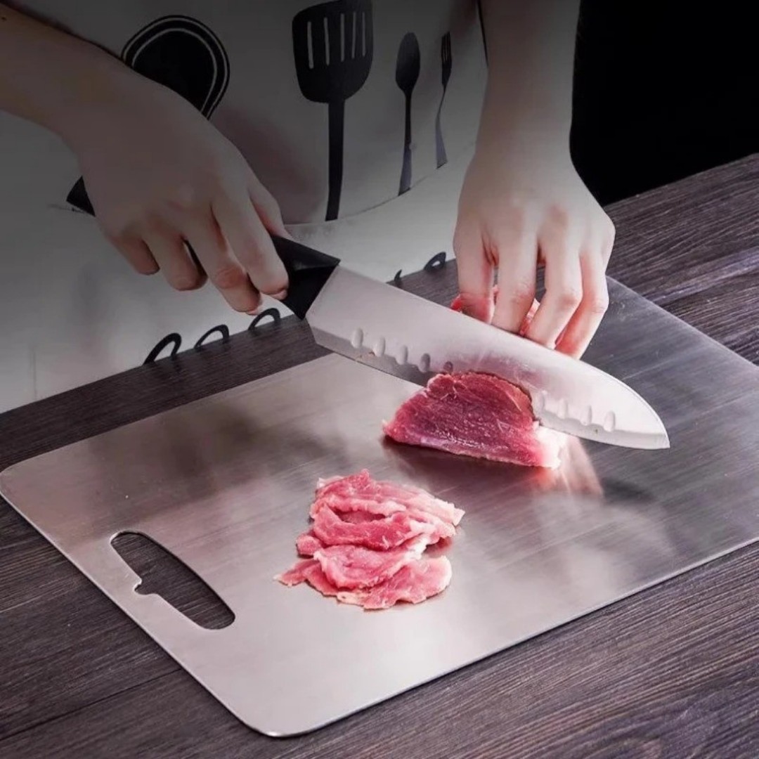 Çelik kesme tahtaları, dayanıklılığı ve bakteri tutmayan yapısıyla mutfaklarımızdaki en önemli ürünlerimizdir. Tahta cam veya en zararlı olan plastik kesme tahtalara kıyasla çok daha uzun ömürlüdür ve asla kırılmayan erimeyen yapısıyla kesme tahtaları arasında en sağlıklı olandır. Gözeneksiz yapısı sayesinde bakteri, küf pislik barındırmaz. En önemli özelliklerinden bir tanesi de başka yemeklerinizin kokusunu kendi içerisinde tutmaz bu sayede yemekleriniz hem temiz hem de sadece kendi kokusu ile vücudunuza girer.